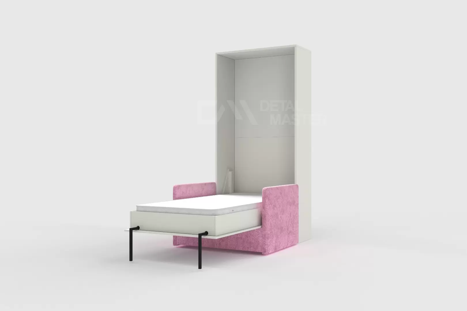Шкаф-кровать ""Flip Bed Sofa Start" работает на механизме раскладывания собственной разработки "Start". Кровать раскладывается легким движением руки, превращаясь в полноценное спальное место. Просто потяните ее за ручки, расположенные на фасаде и выставите ножки-опоры.
